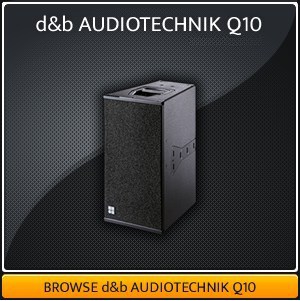 The Q-10 is a passive 2-way full-range loudspeaker manufactured by d&b audiotechnik, and is part of the Q-Series system. It can be used by itself in full-range mode, or in conjunction with other Q-series speakers and can be driven by the D6, D12 or D80 amplifiers. The Q10 is a compact yet powerful cabinet, outputting up to 137dB SPL yet weighing just 22kg. Up to two cabinets can be connected per channel to the D6, D12 and D80 amplifiers.