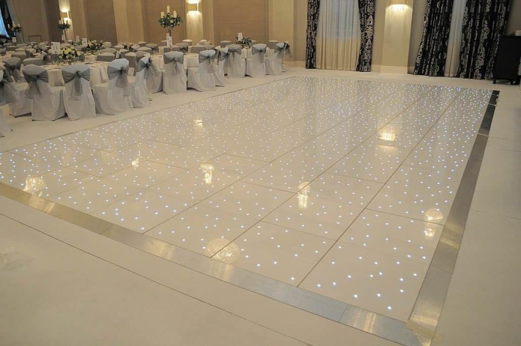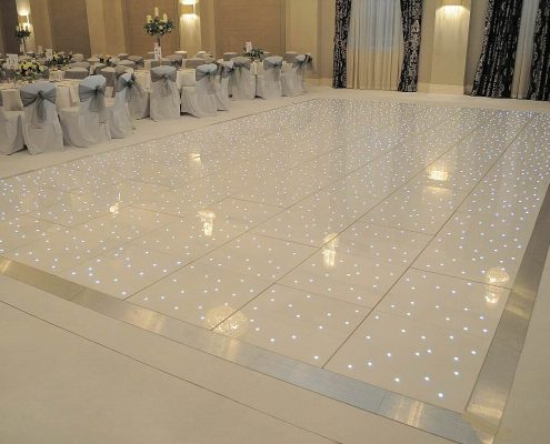 Looking to hire a white LED starlit dance floor for your wedding or event you have found the right dance floor hire company. The Sound & Light Hire Company stock a large number of dance floors at the right prices. We do ask that no drinks are brought onto the floor for health and safety reasons and to help maintain the longevity of the floor.
